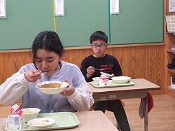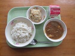 明日の給食のメニューは、ポークカレーライス、納豆サラダです。