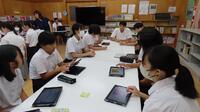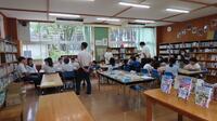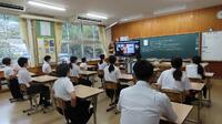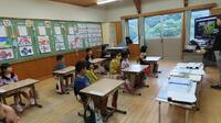 始業式は熱中症予防のためオンラインで行われました。3人の児童生徒が2学期がんばりたいことを発表し、校長先生の話。その後、転入生紹介と諸連絡。休憩後は登下校集会が行われました。