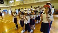 本日、2校時に幼稚園から4年生まで、3校時に5年生から9年生まで集まって、運動会に向けての合同練習を行いました。