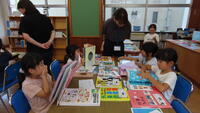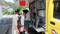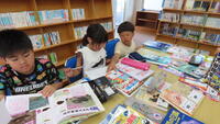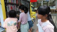 昼休みに移動図書館車「本かろカー」が本校に来ました。子どもたちは、心待ちにしていたようで、昼休みになるとすぐに「本かろカー」のもとに行って本を手に取ってました。