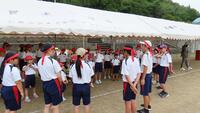 本日2校時目に全校体育を行いました。運動会に向けて、行進や開会式、閉会式の練習を行いました。第1回目の全校体育でしたが、みんな実行委員や団長等の話をよく聞いて動いていました。