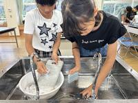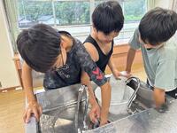 7月11日(金)2校時に、6年生は手洗い洗濯体験をしました。普段は洗濯機が洗濯してくれますが、手洗いで洗濯することがいかに大変なのか分かったと思います。干した後の洗濯物が「石鹸のいいにおいがする」と喜んでいました。