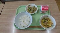 【今日のメニュー】麦ごはん、魚の変わり揚げ(甘酢和え)、小松菜のみそ汁