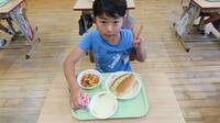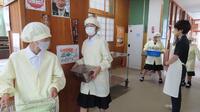 今日は交歓給食でした。笑顔がいっぱいおいしく食べました。