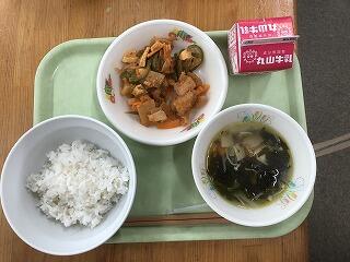 月曜日の給食は、麦ごはん、チンジャオロース、春雨スープです。