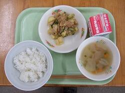 〇給食のメニューは、麦ごはん、いわしの梅煮、かぼちゃの味噌汁でした。