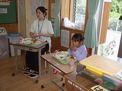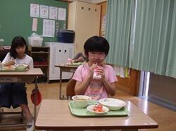 〇明日の1学期最後の給食は、夏野菜カレーライス、フルーツポンチです。