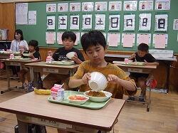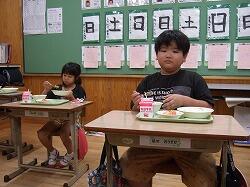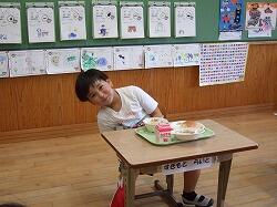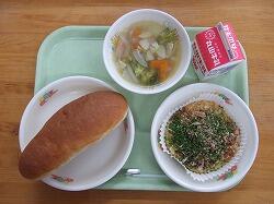 〇今日の給食は「、ミニミルクパン、お好み焼き、野菜スープでした。まさか、お好み焼き・・・・びっくりでした。
