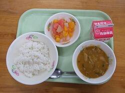 〇今日の給食は、夏野菜のカレーライス、フルーツポンチでした。
