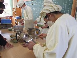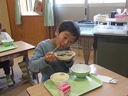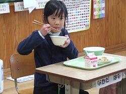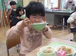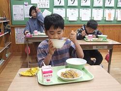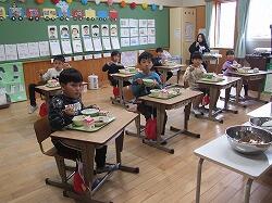 〇今日の給食のメニューは、麦ごはん、さばの味噌煮、里芋のすり流し汁でした。