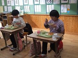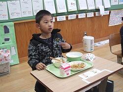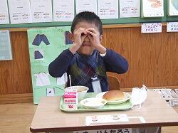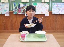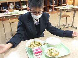 〇今日の給食のメニューは、麦ごはん、あじゴマフライ、小松菜の味噌汁でした。