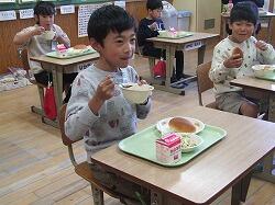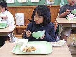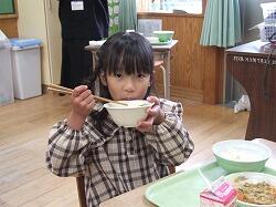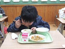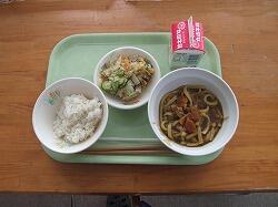 〇今日の給食のメニューは、麦ごはん、カレーうどん、ごまじゃこサラダでした。