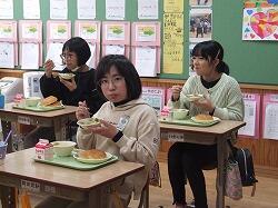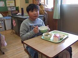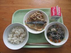 月曜日の給食のメニューは、麦ごはん、さばの味噌煮、里芋のすり流し汁です。