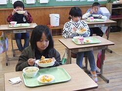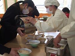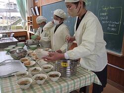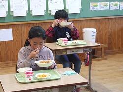 〇今日の給食のメニューは、麦ごはん、ひじきの五目煮、ほうとう汁でした。