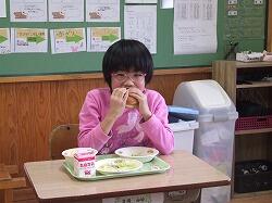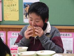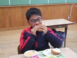〇今日の給食のメニューは、フィッシュバーガー、キャロットポタージュスープでした。