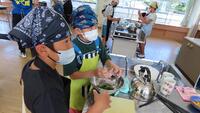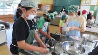 本日、3・4校時目に5・6年生が調理実習を行いました。今回は、「ほうれん草のおひたし」と「スクランブルエッグ」を作りました。安全に気を付けて、協力して作っていました。