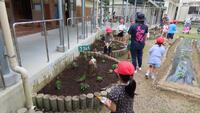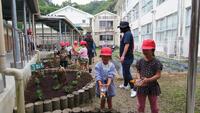 本日、1校時目に1・2年生が2校時目に3・4年生と幼稚園生が花壇やプランターの花植えをしました。花植えには、地域のボランティアの方に来ていただき、スムーズに植えることができました。