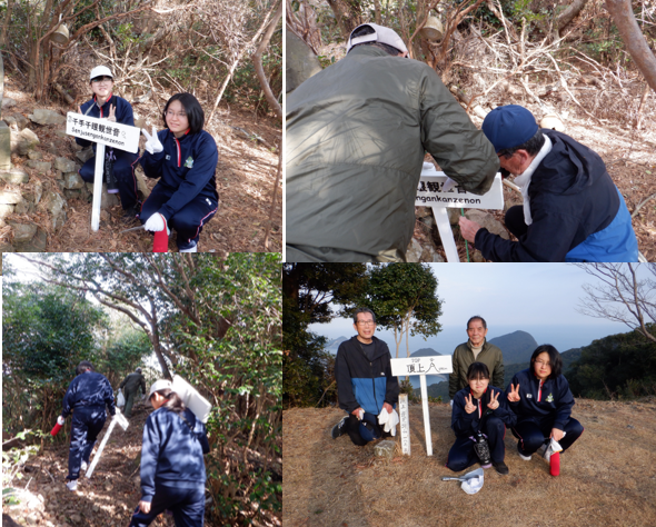 地域の方々のご協力のもと、古く見えづらくなっていた標識のうち7年生が新たに作成した2枚の標識について、この日の午後、遠見場山を登って設置しました。登山客の皆さんにとって大切な標識を設置することができました。