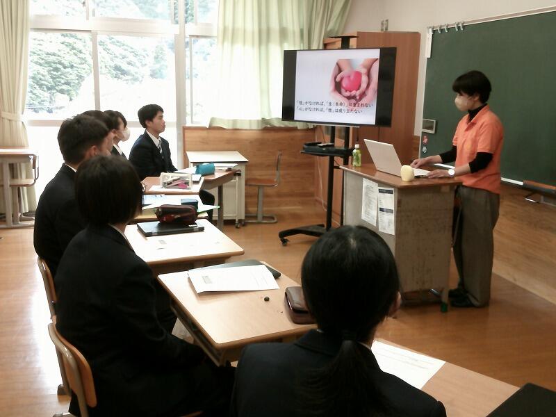 ・今回の講話で一番興味を持ったところは延岡観光協会の仕事についてでした。正直なところ、どんな仕事をしているのか、ただ観光案内をしているだけ?と思っていました。ですが、想像していた倍以上に、新たに分かったことがたくさんあって、心をひかれました。最後にお話していただいた、島野浦学園の私たちに伝えたいことで、島のことを心から自慢してほしい、(夢を実現できる可能性を高めるために)勉強をしてほしいということを教えていただきました。今日教えてくださったことを忘れず、これからにいかしていきたいです。