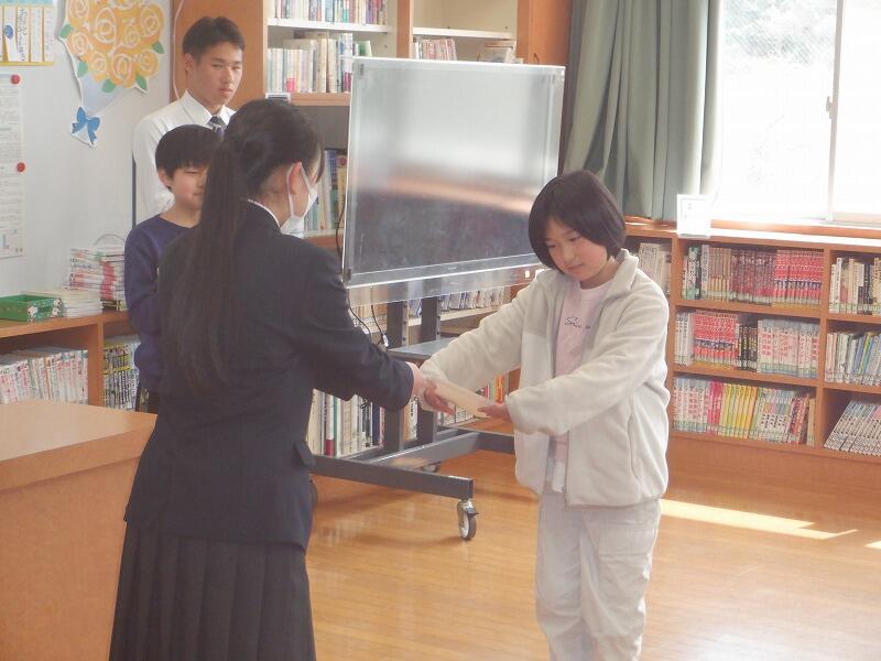 本校児童生徒会も旧児童生徒会から新児童生徒会へとバトンタッチの時を迎えました。旧児童生徒会の中心として活躍してくれた9年生の皆さん、ご苦労様でした。8年生不在のため、7年生や6年生が中心となる新児童生徒会活動がうまく回っていくように今後もサポートをお願いします。新児童生徒会の皆さん、よりよい島野浦学園を作っていくため、これからもみんなで力を合わせてがんばっていきましょう。