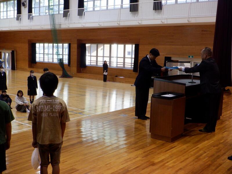 この日の午後に、延岡地区中学校秋季体育大会卓球競技の激励式を行いました。校長先生の激励の言葉、選手決意表明のあと、キャプテンによる選手宣誓がありました。9/28(日)の個人戦に向けて、島野浦学園を代表して精一杯戦ってきてほしいと思います。応援しています。