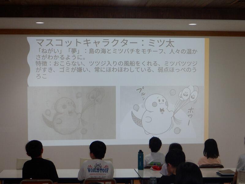 ・今日は観光協会のことやたくさんの人に発信する方法を学べました。特に心に残ったことは、観光協会の方はたくさんの観光客に来てもらうために情報発信をしていることや、商品を買ってもらうために自分たちで物産展などを運営していることです。私は、島のことを発信するときに、パンフレットの作り方や情報収集の仕方など、今日学んだことを生かして発信したいと思いました。これからも島のことをたくさん知って、自分たちで島野浦の良いところ、すごい所をたくさんの人に知ってもらいたいです。