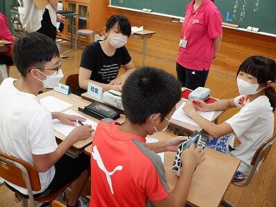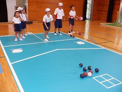 5時間目は、再び1~4年生と5年生に別れました。5年生は、ALTと一緒に外国語活動です。英語で自己紹介をした後、英語のゲームで盛り上がり、さらに交流を深めることができました。1~4年生は体育館で体育。ドッジボールの後、本校では恒例となったボッチャ。ここでもゲームをする中で、たくさんの笑顔が見られました。