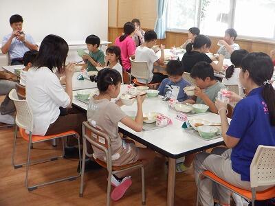 さあ、お待ちかねの給食です。いつものIoT室で、後期課程も一緒に食べました。ここでも人数が多かったので、とても賑やかな時間となりました。