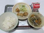 9/27 麦ご飯 牛乳 さつま汁 厚揚げの甘辛炒め