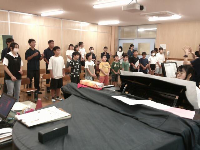 27日の学習発表会に向けて、順調に仕上がってきています。今日は音楽室にて全校音楽がありました。