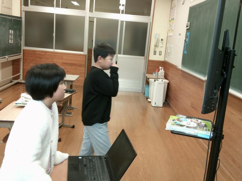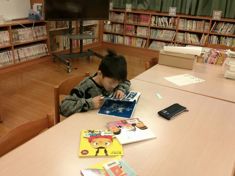 前期課程の子ども達は、図書室で読書したり、大型モニターで日本地図すごろくをしたり、タブレットで調べ活動をしたりしていました。
