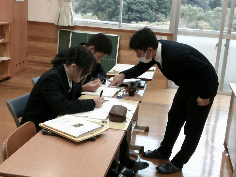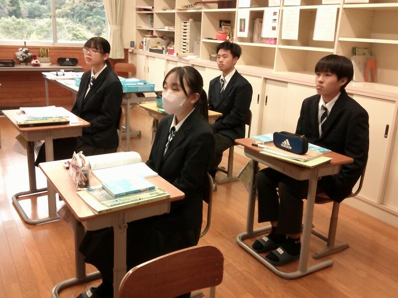 一方、後期課程の8年生は音楽。いよいよ1ヶ月後に迫った卒業式で歌う歌の練習に入りました。9年生は国語。古文や俳句、短歌などについて調べたことを各自工夫して発表していました。