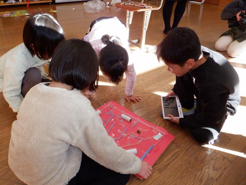 2・3時間目は2年生が主催のおもちゃ祭りです。射的、めいろ、すごろくなど、図工や生活科で作ったおもちゃで、自由に遊んでもらいました。普段は一番下の学年ですが、この日ばかりは説明したり誘導したり楽しませたりして、とても満足そうでした。