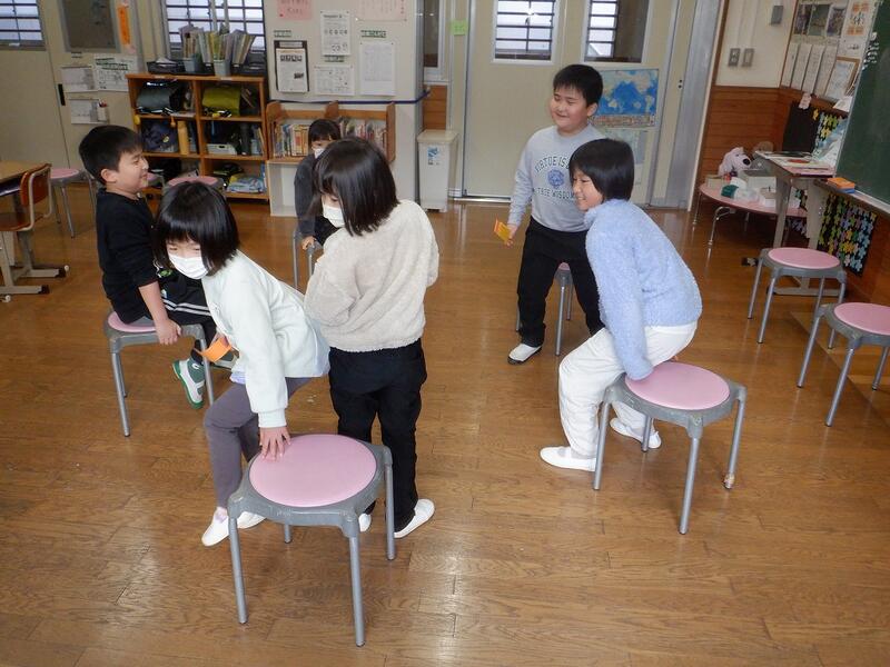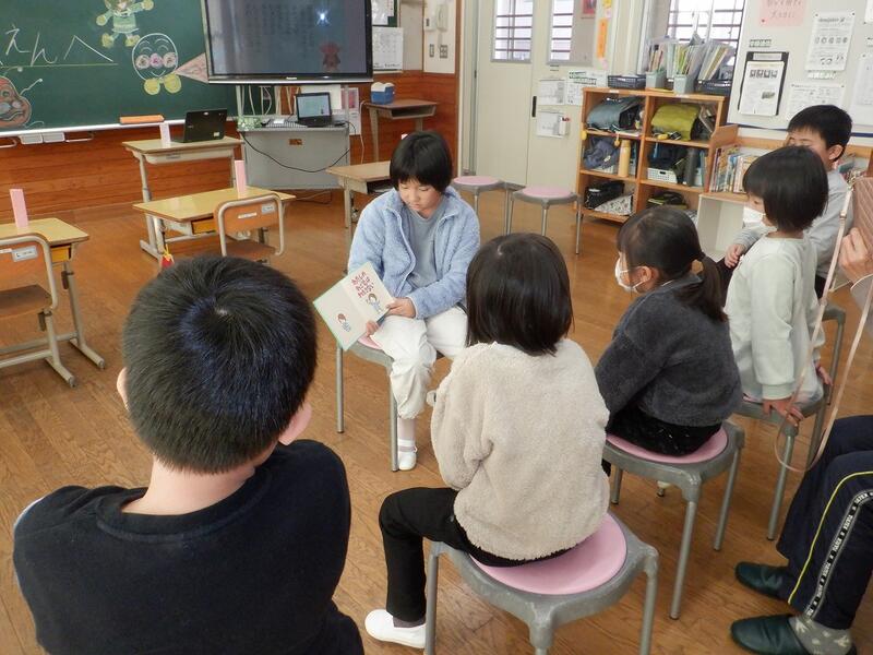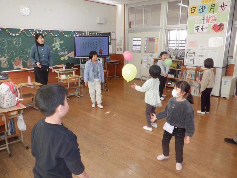 4時間目は、3・4年生との交流です。フルーツバスケットで緊張をほぐした後、絵本の読み聞かせです。こちらも、これまで一生懸命練習してきたのでとっても上手に読むことができ、お互いたくさんの笑顔が見られました。最後にしりとり風船で楽しんだ子ども達。いよいよ、お待ちかねの給食です。