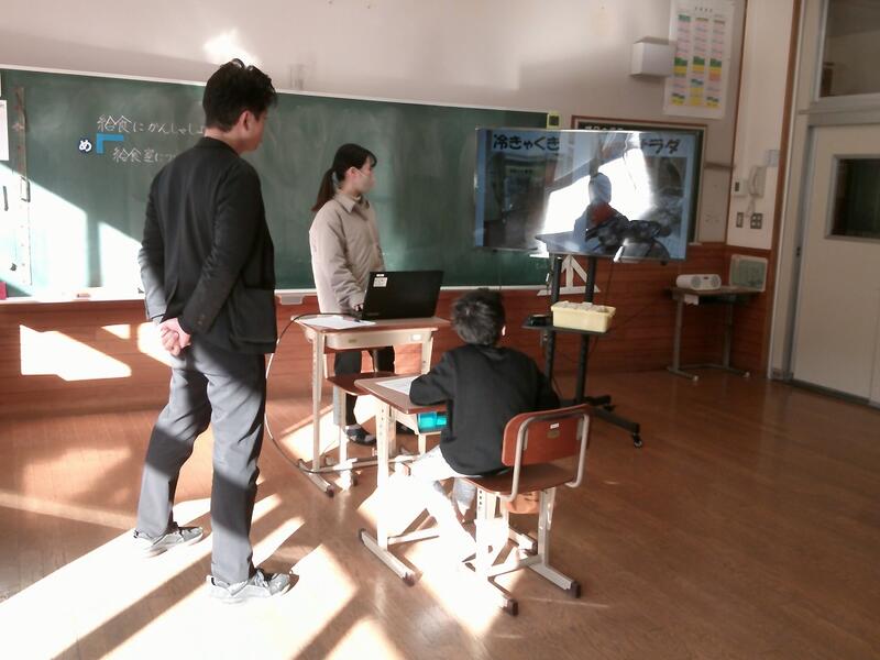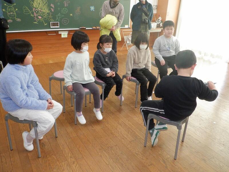 2年生は算数です。色紙をはさみで切り分け、分数の概念について考えていました。3・4年生は学級活動で養護教諭も参加してバランスのとれた食生活についての授業。5・6年生は道徳。「自由とは」について真剣に考えていました。
