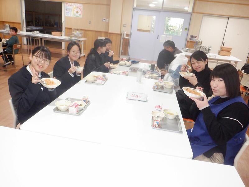 今日の献立は「白ごはん・ぶたじる・ひじきに・ミルクプリン・牛乳」でした。本校の子どもたちは、残菜がほとんどなく、何でももりもり食べます。片付けの後、調理員さん方に来ていただき、代表生徒のあいさつと全校児童生徒が書いた感謝のメッセージをお渡ししました。調理員さんからは、「みなさんが残さず食べてくれることがうれしいです」というお言葉をいただきました。食材を提供してくださる方々、栄養士の先生、調理員さん。そして私たちに「いのち」を分けてくれる食材すべてに感謝しながら、「いただきます」「ごちそうさまでした」が言えるといいですね。