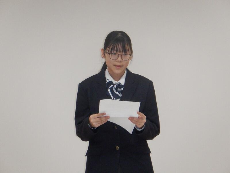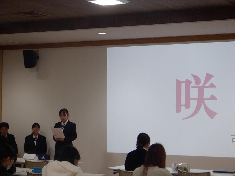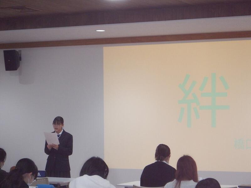 第一部では、校長先生のお話の後、立志者による立志の誓い~私の将来~の発表が行われました。一文字ずつ選んだ漢字を紹介し、自分のこれからの生き方について力強く語っていました。