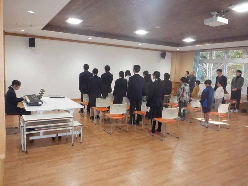 まずは3人の代表児童生徒が、2学期がんばったことや3学期の目標を熱く語ってくれました。校長先生からは、「1月7日、全員元気に会いましょう」というお話。最後に校歌を歌って式は終わりました。