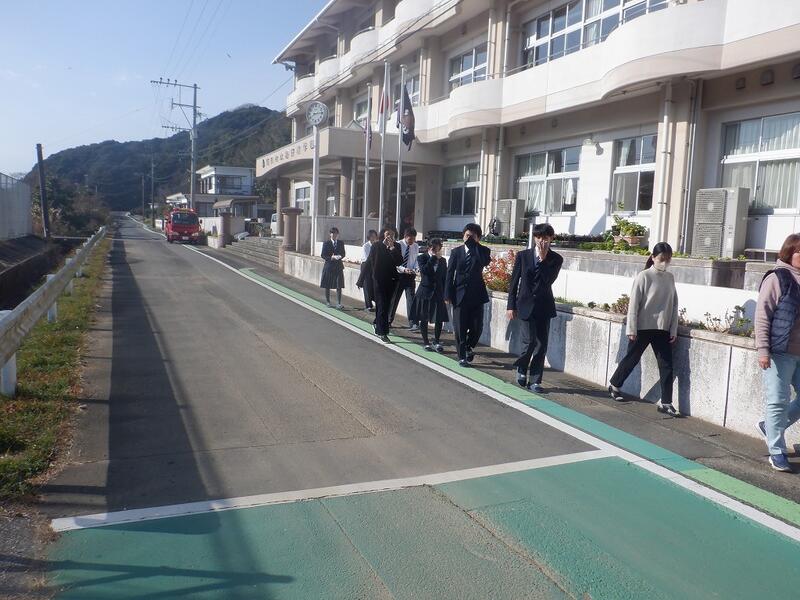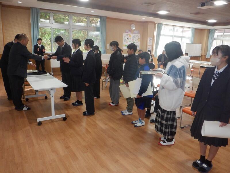 実はこの日のために、2~8年生が受験生一人一人にお手紙を書いていました。それを今日、島野浦学園特製巨大お守りに入れて、8年生が代表で手渡したのです。その後、9年生が受験に向けた意気込みを熱く語ってくれました。学園の児童生徒、職員、そして島民の皆さん全員が応援しています。悔いのないよう、ベストを尽くしてほしいものです。