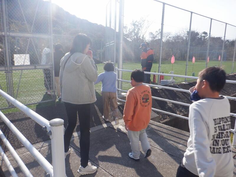 観客席でお弁当を食べた後、午後の部のスタート。始めは応援、次に生涯スポーツを体験しました。今回は、ペタンクグループとネットパスグループに分かれ、それぞれが気軽に楽しめるスポーツにチャレンジしました。