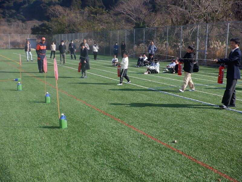 その後、地元消防団の方々に来ていただき、練習用の消火器を使って火を消す練習をしたり、実際の放水の様子を見せていただいたりしました。災害は、いつ起こるか分かりません。普段から備えておくことが大切ですね。