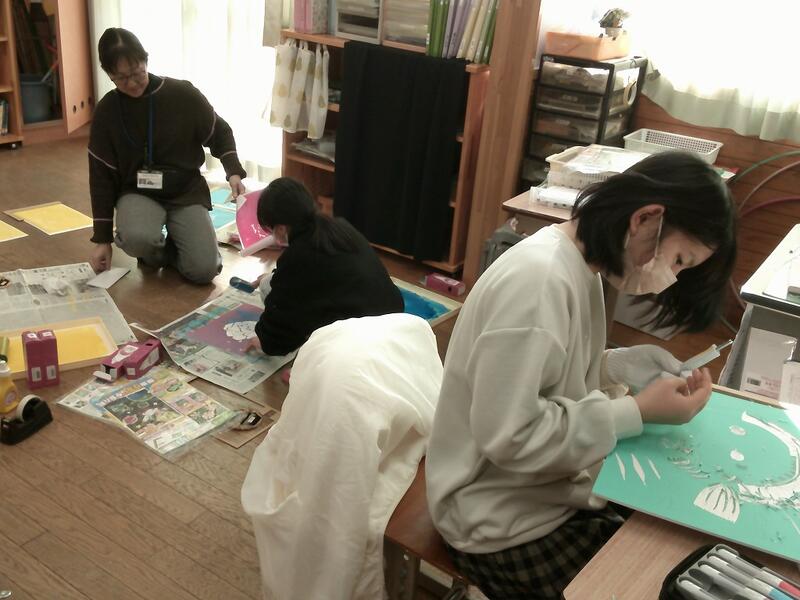 本校には月に2回ほど、非常勤講師が来られて後期課程に美術指導をしていただいています。今日は、8・9年生それぞれ2時間ずつ、作品作りに没頭していました。