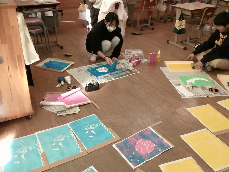 前期課程の子どもたちは、図工の時間、版画の作品制作に励んでいます。
