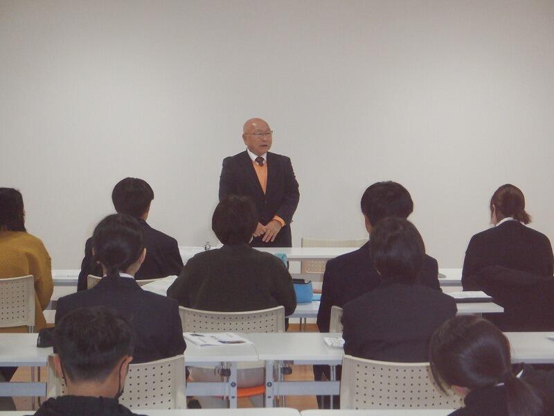 午後の酒造では、日本酒ができるまでの行程を説明してもらいながら、酒蔵の中を案内してもらいました。地元延岡で100年以上続く企業の伝統と技術のお話を熱心に聞いていました。途中、テレビでよく見る貯蔵タンクのある場所や30℃に保たれた麹菌を扱う場所もあり貴重な体験をさせていただきました。最後には酒造のオリジナル飲料を試飲させていただき、みんな舌鼓を打っていました。キャリア教育・ふるさと教育として行われた事業です。講師の方からは、生徒の将来に向けての想いを話していただきました。将来の生き方の参考にしてほしいお話でした。