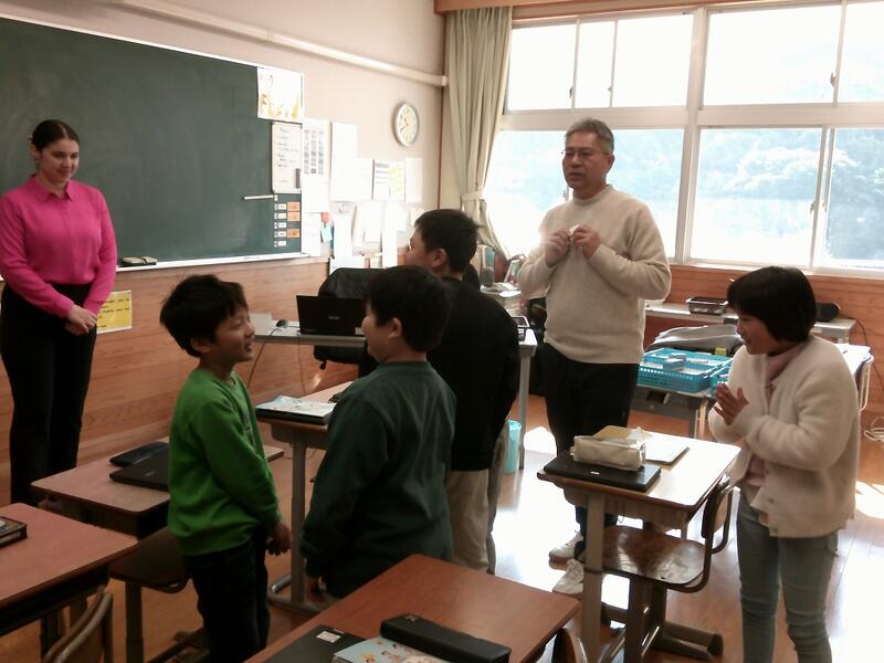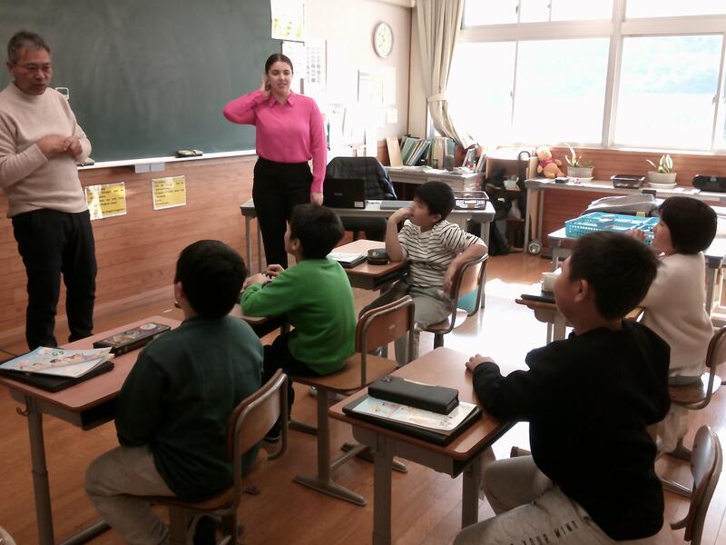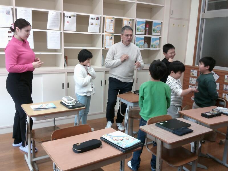 今日はALTが来校され、3時間目は、2年生の学級活動、3・4年生の外国語活動を合同で行いました。