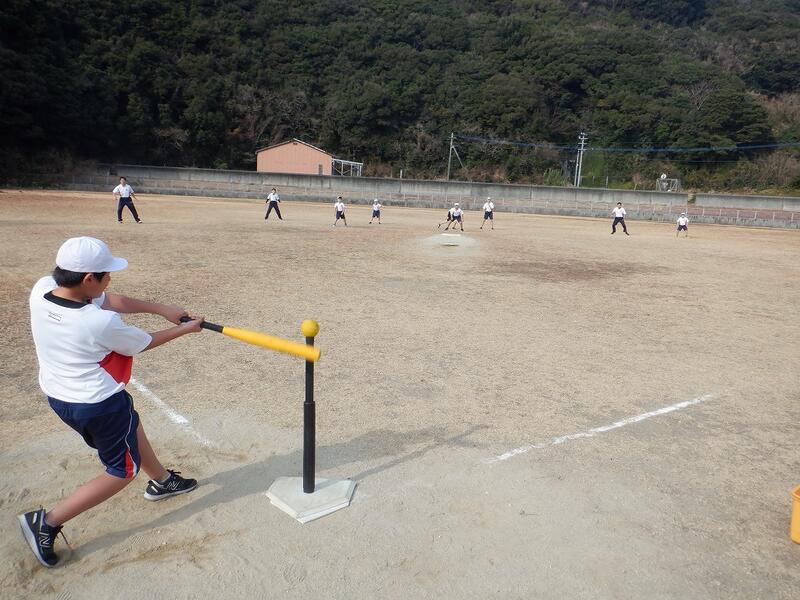 全員で準備運動のあと、キャッチボール、バッティング練習と続き、最後に試しのゲームをしました。攻撃側は、ボールを打った後、バットをかごの中に入れて、カラーコーンをぐるっと回ってホームに帰ってきます。守備側は、ボールをキャッチした人の所に全員が集まって「捕ったど~」のかけ声で座ります。どちらが早いかでアウトかセーフが決まるという、特別ルールで行いました。かごにバットを入れ忘れたり、かけ声がうまくそろわなかったりと珍プレーも見られましたが、みんなで楽しく、野球の醍醐味を味わっていました。特に受験を直前に控えた9年生にとっては、よい気分転換になったことでしょう。