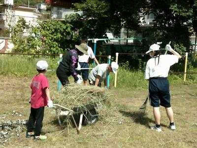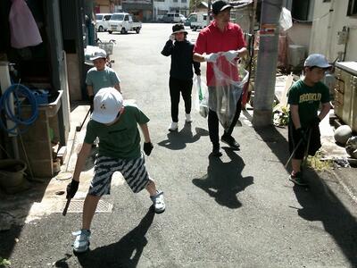 今日は島浦地区全体での「島内清掃」の日ということで、学園の子どもたちも清掃活動を行いました。3つのグループに分かれて、地域のごみ拾いや旧島野浦小学校グラウンドの草集めなどを行いました。強い日差しの中でも、子どもたちは真剣に、そして楽しそうに、たくさんのごみや草を集めていました。活動のあとには「きれいになってスッキリした。」「少ない人数でもたくさんごみを集められてよかった。」という感想が聞かれました。