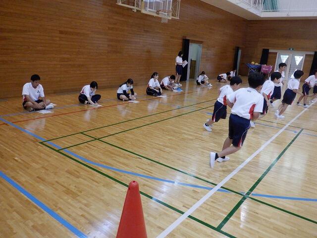 まずは体育館に集まって、説明を聞いた後に準備運動。3グループに分かれ、ローテーションでそれぞれの種目にチャレンジしました。前期と後期が一緒になったグループ編成で、お互いに励まし合いながら、去年の、そして練習の時の自分を超えようと、全力で取り組んでいました。予想以上に記録が伸びた子、練習の方が記録がよかった子など様々でしたが、これからも、体力の向上に努めていってほしいと思います。