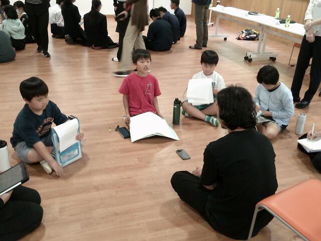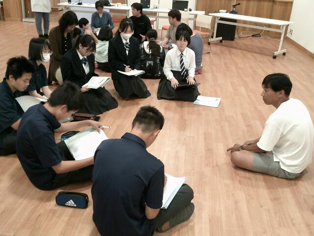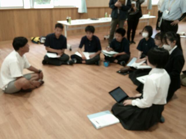 後半は、ファースト・ミドル・トップの各ステージに分かれ、講師の方々を囲んで車座になってのフリートークです。子ども達はこの日のためにいろいろ質問を考えてきて、それらに講師の方々が丁寧に答えてくださいました。こういった機会を通して、今現在島のために活躍されている方々と、これからの島の将来を担う子ども達とが、ともに島について真剣に考えるきっかけとなったのではないでしょうか。講師の方々に厚くお礼申し上げます。