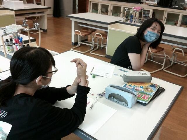 6年生は、ヒトや動物の体、という単元です。今日は、心臓のはたらきについて学習しました。まずは自分の心臓の動きを確認。聴診器で拍動を、手首や首を触って脈拍を測りました。次に、いつもはやっていはいけない、廊下をダッシュ。そして脈を測り、運動後に回数が増えることを知りました。